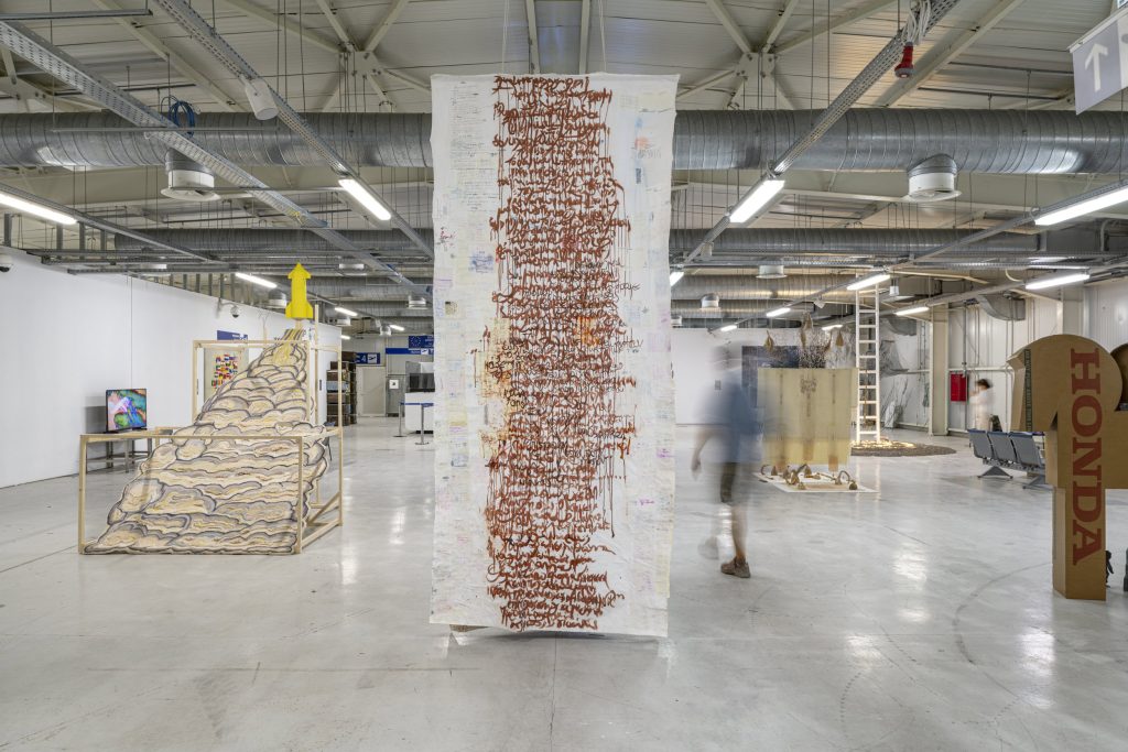 Η γλώσσα των αεροδρομίων λειτουργεί με μια συγκεκριμένη λογική: λιτή, κωδικοποιημένη και διεθνική. Ανακοινώσεις, επιγραφές και αυτόματες φωνές συνθέτουν έναν σημασιολογικό ιστό, σχεδιασμένος να καθοδηγεί, αλλά που συχνά μπορεί να αποπροσανατολίσει. Κάτω από την επιχειρησιακή της ακρίβεια διακρίνεται ένας βαθύτερος μηχανισμός, μια αρχιτεκτονική ελέγχου και μια ψευδαίσθηση τάξης. Η υποδομή των σημάτων και των ήχων αποκαλύπτει μια λανθάνουσα επιθυμία να επιβληθεί νόημα στο χάος, μια επιθυμία που μπορεί και η ίδια να αποκωδικοποιηθεί, να αντιστραφεί και να επαναπροσδιοριστεί μέσω της καλλιτεχνικής παρέμβασης. Οι πινακίδες που έχουν αφεθεί επίτηδες στη θέση τους, η συνεχιζόμενη χρήση του αρχικού φωτισμού του αεροδρομίου και η στρατηγική τοποθέτηση των έργων, χωρίς να εντάσσονται στην αναμενόμενη ροή προς ένα σημείο αναχώρησης, δημιουργούν συλλογικά έναν λεπτό αποπροσανατολισμό, προκαλώντας έναν επαναπρογραμματισμό της χωρικής λογικής και αντίληψης.