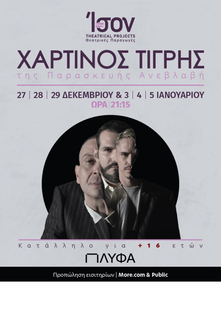 Η νεοσύστατη εταιρεία θεατρικών παραγωγών «Ίσον» παρουσιάζει το θεατρικό έργο «Χάρτινος Τίγρης», της Παρασκευής Ανεβλαβή, ένα έργο γροθιά στο στομάχι, εμπνευσμένο από την ταραχώδη ζωή του διαβόητου κατά συρροή δολοφόνου Carl Panzram.