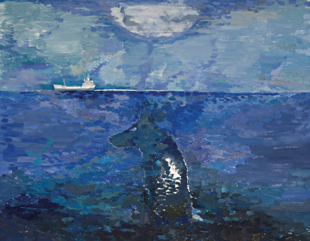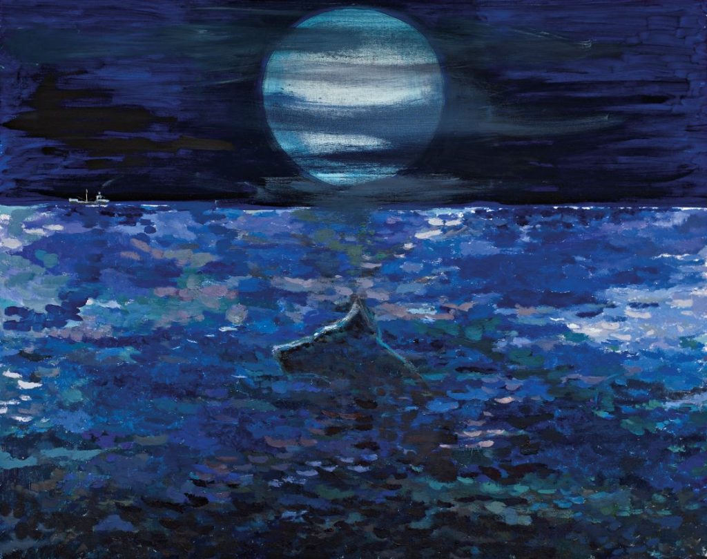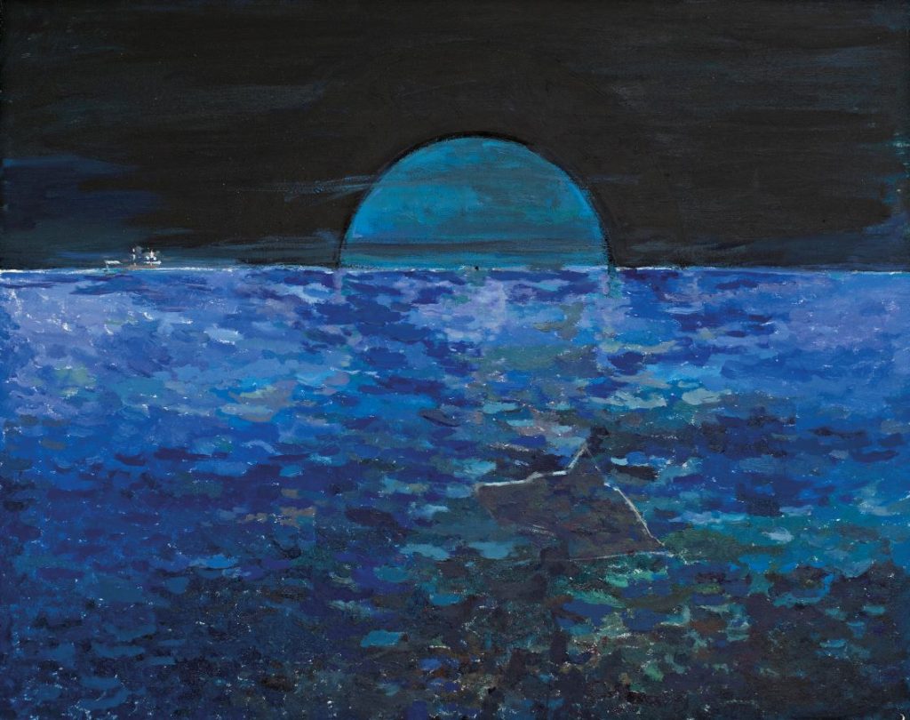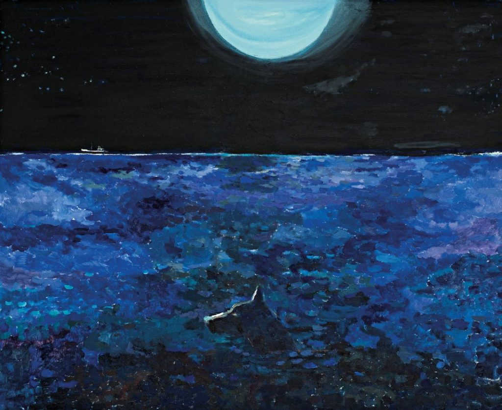 Από την έκθεση δεν μπορούσαν να λείπουν τα βασικά μοτίβα του Σεβαστάκη, αυτά που εμμένουν στο έργο του και το φωτίζουν με ένα αλλόκοτο φως: λύκοι που κολυμπούν ή αναδύονται μέσα από τη θάλασσα, ενώ στον νυχτερινό ουρανό δεσπόζει η σελήνη. Μυστικά τοπία απειλής, φόβου και επιφυλακής