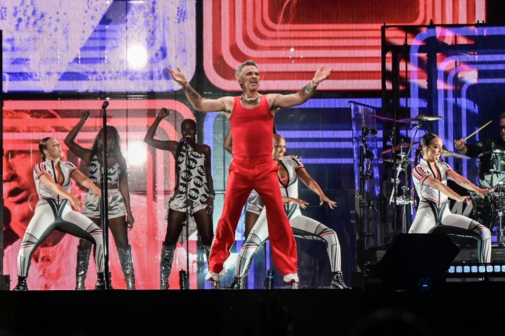 Ο τραγουδιστής εμφανίστηκε στη σκηνή φορώντας κόκκινο μπλουζάκι και κόκκινο παντελόνι, προμηνύοντας ότι η ατμόσφαιρα θα «πάρει φωτιά» – όπως και συνέβη.