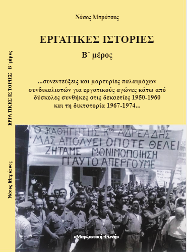 Η κατανόηση της περιόδου που προηγήθηκε της εξέγερσης του Πολυτεχνείου, οι κοινωνικές αντιστάσεις που προηγήθηκαν και οι συνθήκες που δημιουργούσαν, αποτυπώνονται στην ερευνητική δουλειά που μπήκε εδώ και λίγο καιρό στον κόσμο του βιβλίου. Πρόκειται για το βιβλίο «Εργατικές Ιστορίες» Β’ μέρος (συγγραφέας ο δημοσιογράφος Νάσος Μπράτσος). Είναι προϊόν πολύχρονης έρευνας και στην ύλη του βιβλίου περιλαμβάνονται συνεντεύξεις με παλαίμαχους συνδικαλιστές που είχαν ληφθεί πριν από πολλά χρόνια και οι περισσότεροι εξ αυτών σήμερα δεν βρίσκονται στη ζωή. Κεντρική περίοδος είναι οι δεκαετίες 1950 και 1960, καθώς και τα χρόνια της δικτατορίας. Πριν τον κύριο όγκο των συνεντεύξεων υπάρχουν κάποιες συνεντεύξεις που είναι οι «γέφυρες» με τις περιόδους που προηγήθηκαν, την κατοχή και τα χρόνια πριν από αυτήν.