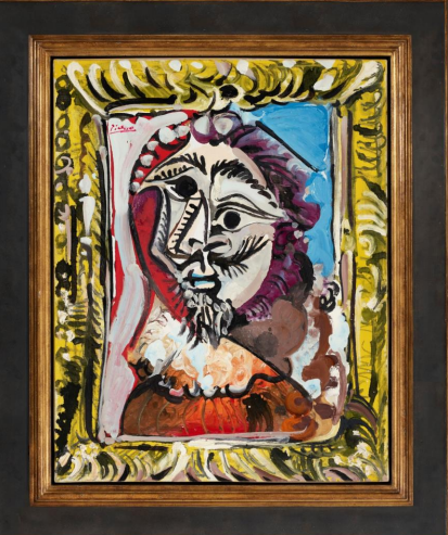 Για το Buste d’homme dans un cadre, ο Πικάσο άντλησε έμπνευση από διάσημους ζωγράφους της χρυσής εποχής, όπως ο Ρέμπραντ και ο Βελάσκεθ και τους γίγαντες της λογοτεχνίας, Σαίξπηρ και Ντούμας.