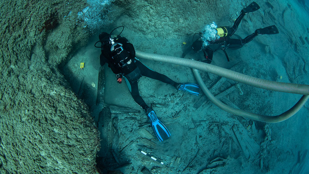 Κατά τη φετινή υποβρύχια ανασκαφική έρευνα συνεχίστηκε η διερεύνηση και ανασκαφή της τομής που είχε ήδη αρχίσει το 2019, στο δυτικό όριο του σωζόμενου σκαριού του πλοίου. Στον χώρο της τομής εντοπίστηκαν πολλά ξύλα, τόσο από το πέτσωμα του πλοίου, όσο και τμήματα νομέων. Τα τμήματα αυτά ήταν διάσπαρτα και χωρίς συγκεκριμένη διάταξη, που μαρτυρούν τη γενικότερη καταστροφή στο χώρο του ναυαγίου κατά τη βύθισή του, όσο και κατά τις μετέπειτα διεργασίες ναυαγιαιρεσίας. Η εικόνα της καταστροφής του πλοίου ήταν ιδιαίτερα έντονη, καθώς τμήματα των νομέων βρέθηκαν να έχουν παγιδευτεί κάτω από βράχια, ενδεικτικό και της σφοδρότητας του κυματισμού που προκαλούν στην περιοχή κυρίως οι νότιοι άνεμοι και οι οποίοι επηρεάζουν τον πυθμένα σε μεγάλο βάθος.
