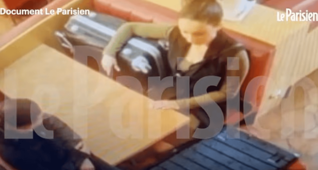 Σε βίντεο που δημοσιοποίησε η Le Parisien, η Μπενκιρέντ φαίνεται να ανοίγει τη βαλίτσα για να δείξει το περιεχόμενό της σε έναν άνδρα.