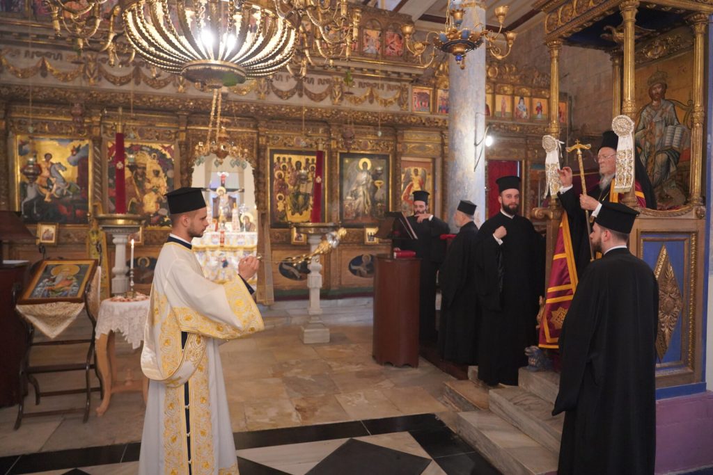 Ο Οικουμενικός Πατριάρχης χοροστάτησε, χτες 22 Οκτωβρίου, στον ναό του Αγίου Γεωργίου Νεοχωρίου, στον Βόσπορο, που είναι ένα από τα τρία μετόχια του Πανάγιου Τάφου στην Κωνσταντινούπολη, στον εσπερινό της θρονικής εορτής του Πατριαρχείου Ιεροσολύμων, κατά την οποία τιμάται η μνήμη του Αποστόλου Ιακώβου του Αδελφοθέου, πρώτου επισκόπου Ιεροσολύμων.
