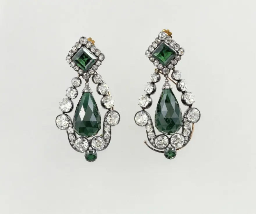 Ένα ζευγάρι σκουλαρίκια με σμαράγδια από το σετ κοσμημάτων της Μαρίας Λουίζας: