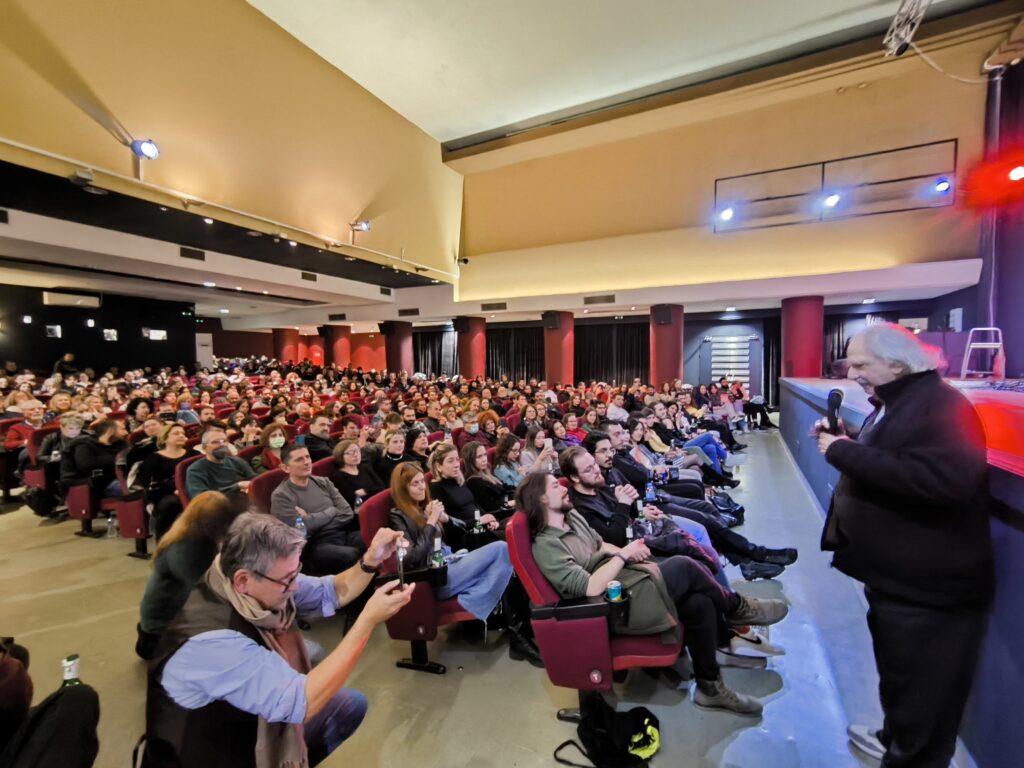 Είναι ένας άνθρωπος που λατρεύει το σινεμά και, πιστέψτε με, από τους λίγους που γνωρίζουν τόσα πολλά για τον κινηματογράφο. Και φυσικά κλείσαμε το 2023 με την εορταστική προβολή της Κάλπικης Λίρας (1955) του Γιώργου Τζαβέλλα, η οποία ήταν και η πιο συγκινητική μέχρι τώρα προβολή του αφιερώματος. Αξίζει να αναφερθεί πως είχε πολλές δεκαετίες να προβληθεί σε κινηματογραφική αίθουσα. Είναι συγκλονιστικό το να ακούς καθ’ όλη τη διάρκεια της προβολής ένα υπέροχο μείγμα δακρύων, λυγμών και γέλιων από τους θεατές».