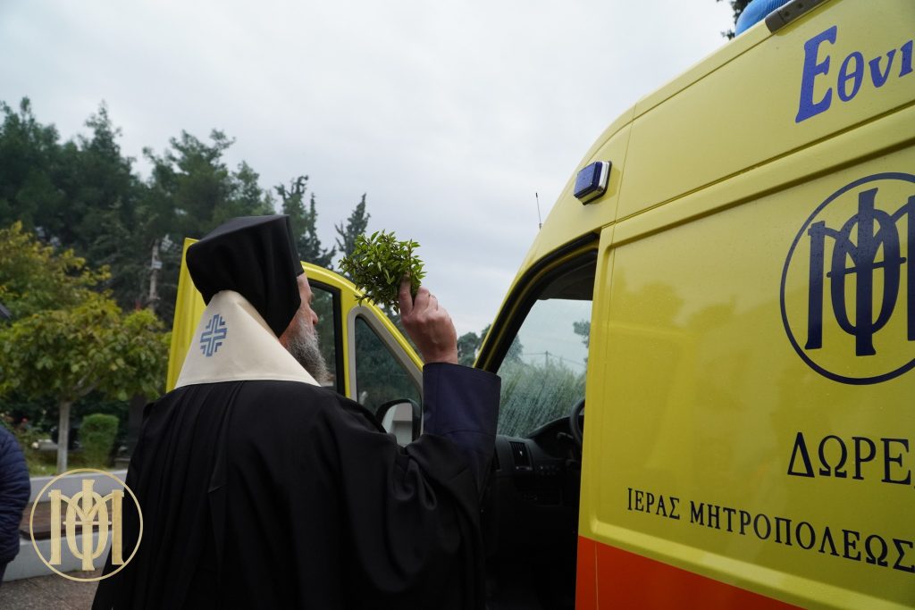 Όπως αναφέρει σε ανάρτησή της η Μητρόπολη, «Πριν από την παράδοση τελέσθηκε από τον Επίσκοπό μας ο Αγιασμός παρουσία του Διευθυντή του Ε.Κ.Α.Β. Θεσσαλονίκης κ. Δημητρίου Κουρτίδη, της Διευθύντριας – Συντονίστριας ΚΕΠΥ-ΕΚΑΒ Βορείου Ελλάδος κ. Γεωργίας Λεπτοκαρίδου – Λακασά, των εργαζομένων, των διασωστών, των εκπαιδευομένων και κληρικών της τοπικής Εκκλησίας.
