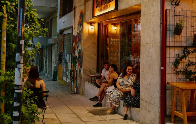 Όπως γράφει το Time Out «καθώς πέφτει η νύχτα, ο δρόμος μεταμορφώνεται: υπαίθρια τραπέζια γεμίζουν τα πεζοδρόμια σε σημεία όπως η παραδοσιακή ταβέρνα, η indie μουσική λούζει τον αέρα και μπαρ με craft μπύρες σφύζουν από συζητήσεις».