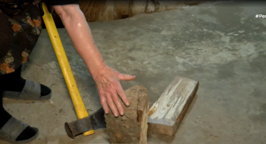 Από το πρωί ξεκινά τις δουλειές με το καθάρισμα του σπιτιού, το μαγείρεμα, τον κήπο, την αποθήκη, τα ξύλα, έως το βράδυ δεν σταματά. Περιμένοντας το συνεργείο της ΕΡΤ σήμερα το πρωί, ετοίμασε από εχθές το βράδυ μια κολοκυθόπιτα, αποδεικνύοντας ότι η ξεκούραση είναι άγνωστη λέξη.