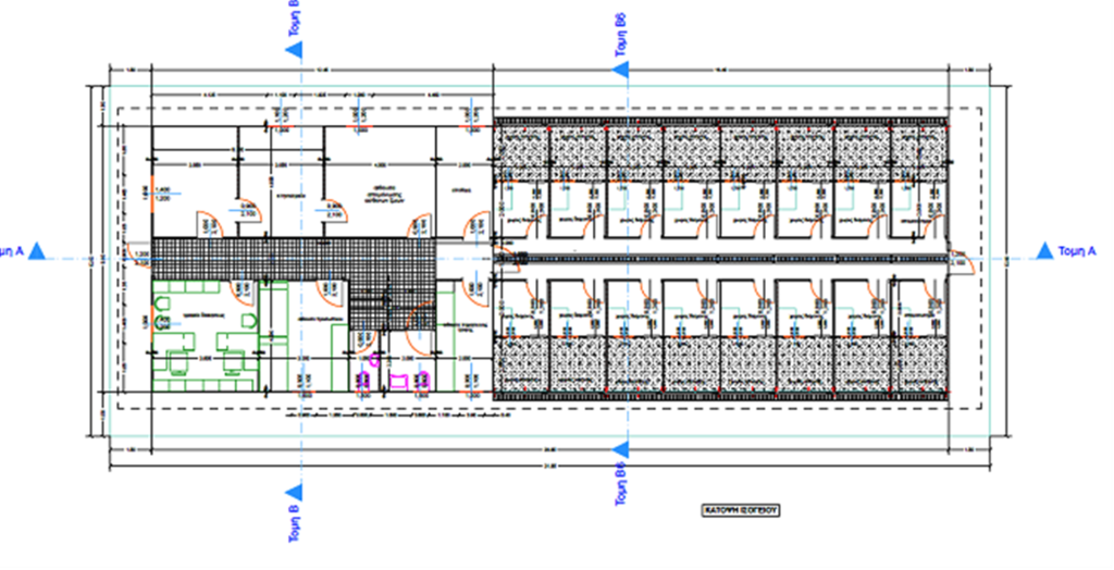 Το καταφύγιο θα περιλαμβάνει κτηνιατρείο για την παροχή ιατρικής φροντίδας και στειρώσεων, ενώ θα διαθέτει κατάλληλους περιφραγμένους χώρους φιλοξενίας καθαρού εμβαδού 4,00 μ² ανά ζώο, με πάνελ ύψους τουλάχιστον 1,70 μ. για προστασία από τις καιρικές συνθήκες. Ο σχεδιασμός του έργου προβλέπει επίσης ειδικά διαμορφωμένο χώρο αποθήκευσης τροφών, χώρο άσκησης των ζώων, καθώς και απομονωτήριο για ύποπτα ή μολυσματικά περιστατικά, με στόχο την ασφάλεια και την ευζωία όλων των φιλοξενούμενων ζώων.
