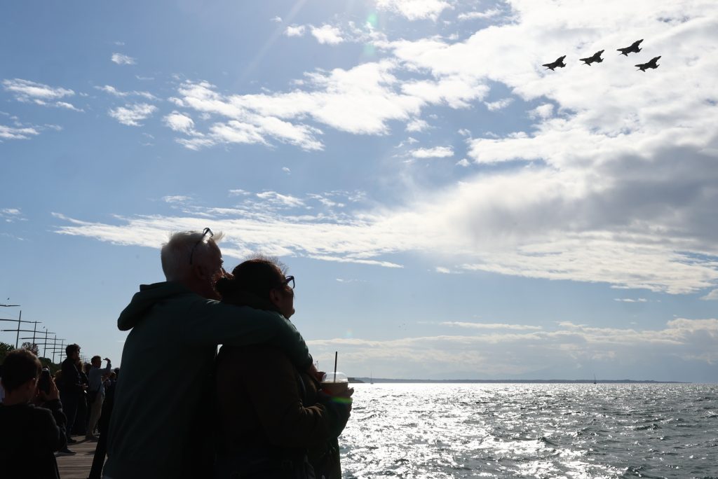 Όλοι όσοι βρέθηκαν κοντά στο παραλιακό μέτωπο έστρεψαν τα μάτια τους στον ουρανό για να θαυμάσουν τους άψογους σχηματισμούς.