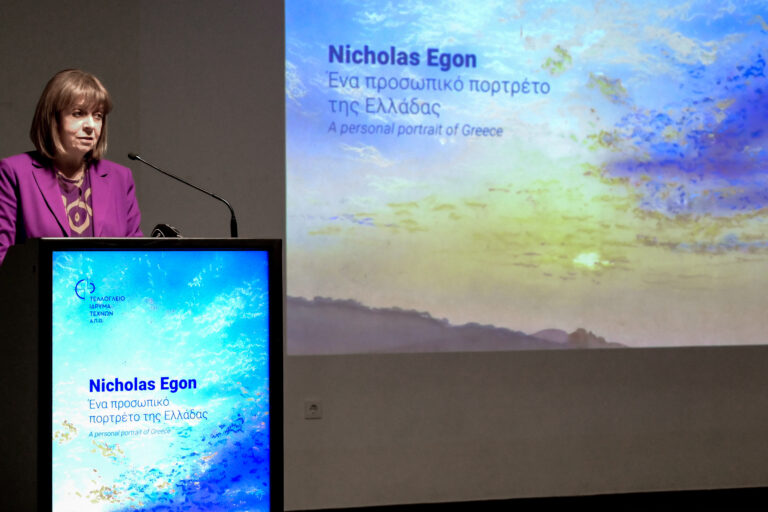 «Είναι στ’ αλήθεια συγκινητικό να βλέπει κανείς με πόση αισθαντικότητα ένας ζωγράφος γεννημένος στο κοσμοπολίτικο προπολεμικά Μπρνο της σημερινής Τσεχίας, όπως ο Nicholas Egon, προσέλαβε και προσέγγισε το ελληνικό τοπίο. Πώς αυτός ο ταξιδευτής, που έφτασε στην Ελλάδα από την καρδιά της κεντρικής Ευρώπης, απέκτησε τόση οικειότητα με τη διαυγή και φωτεινή εικόνα του δικού μας μικρόκοσμου. Πώς αποτύπωσε με τόση ενάργεια τις λεπτομέρειες της ελληνικής γης, τις ασημιές ελιές, τις λευκορόδινες αμυγδαλιές, τις κατακόκκινες παπαρούνες, τα χρυσά πλατανόφυλλα, διασώζοντας στις τοπιογραφίες του την βαθιά αγάπη του για τη χώρα μας», είπε χαρακτηριστικά η κα Σακελλαροπούλου κατά τη διάρκεια των εγκαινίων της έκθεσης με τίτλο «Nicholas Egon. Ένα προσωπικό πορτρέτο της Ελλάδας».