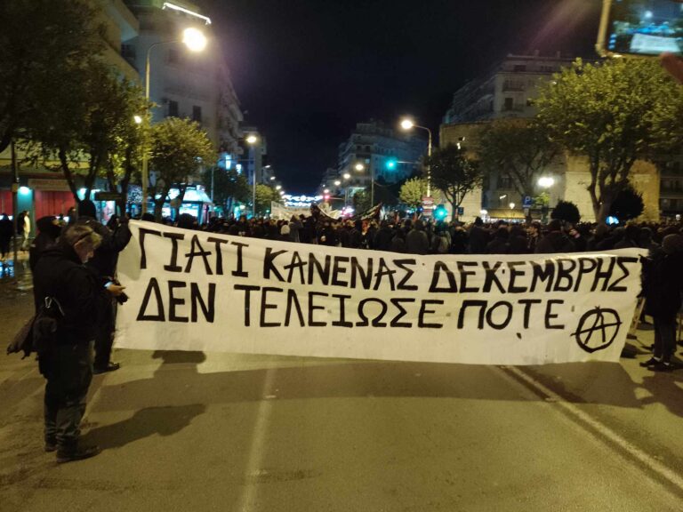 Ολοκληρώθηκε στο κέντρο της Θεσσαλονίκης η πορεία για την επέτειο της δολοφονίας του Αλέξανδρου Γρηγορόπουλου.