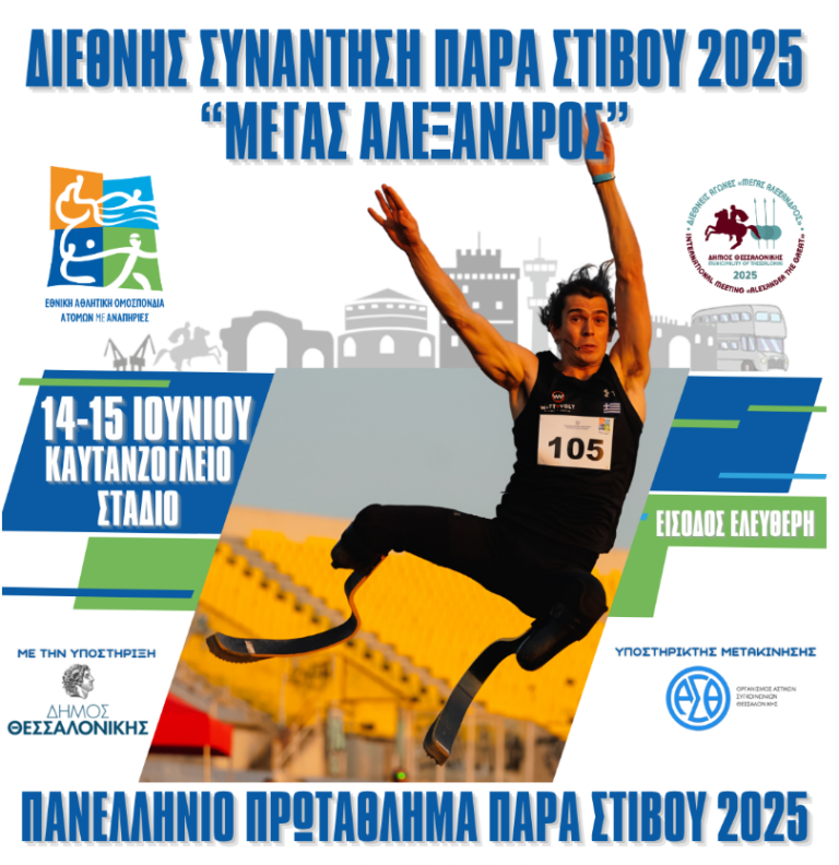 Οι Διεθνείς Αγώνες & το Πανελλήνιο Πρωτάθλημα Παρά Στίβου θα πραγματοποιηθούν στο πλαίσιο διεξαγωγής των Διεθνών Αγώνων «Μέγας Αλέξανδρος» του Δήμου Θεσσαλονίκης, σήμερα Σάββατο 14 και αύριο Κυριακή 15 Ιουνίου 2025 στο Καυτανζόγλειο Στάδιο, σε συνεργασία με την Εθνική Αθλητική Ομοσπονδία ΑμεΑ.