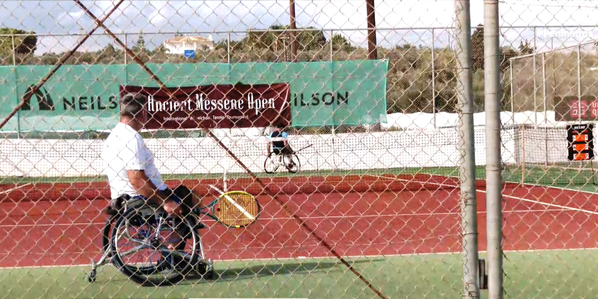 Πάνω από τα τετριμμένα, καθημερινά ο δημοσιογράφος της ΕΡΤ Κώστας Γαζούλης παρουσιάζει τους αθλητές που συμμετέχουν στο διεθνές τουρνουά τένις με αμαξίδιο στην Καλαμάτα.