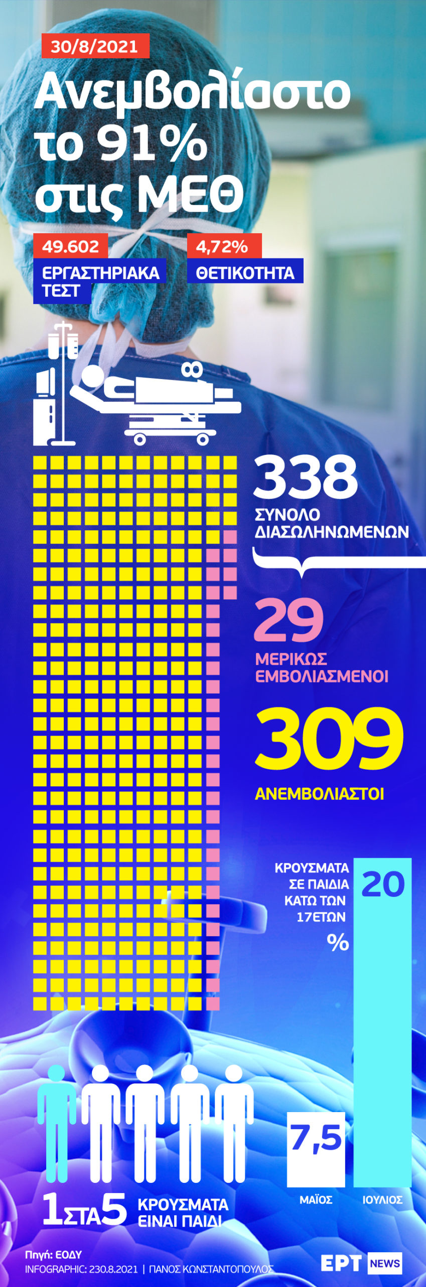 Infographic: Ανεμβολίαστο το 91% στις ΜΕΘ