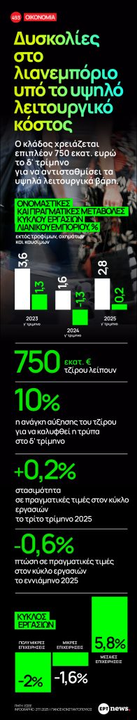 Δυσκολίες αντιμετωπίζει το λιανεμπόριο από το υψηλό λειτουργικό κόστος. Ο κλάδος χρειάζεται επιπλέον 750 εκατ. ευρώ το δ’ τρίμηνο για να αντισταθμίσει τα υψηλά λειτουργικά βάρη.