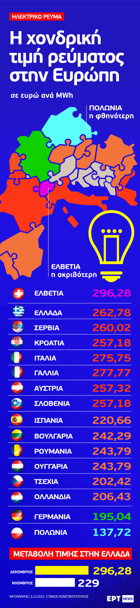 Infographic: Η χονδρική τιμή ρεύματος στην Ευρώπη