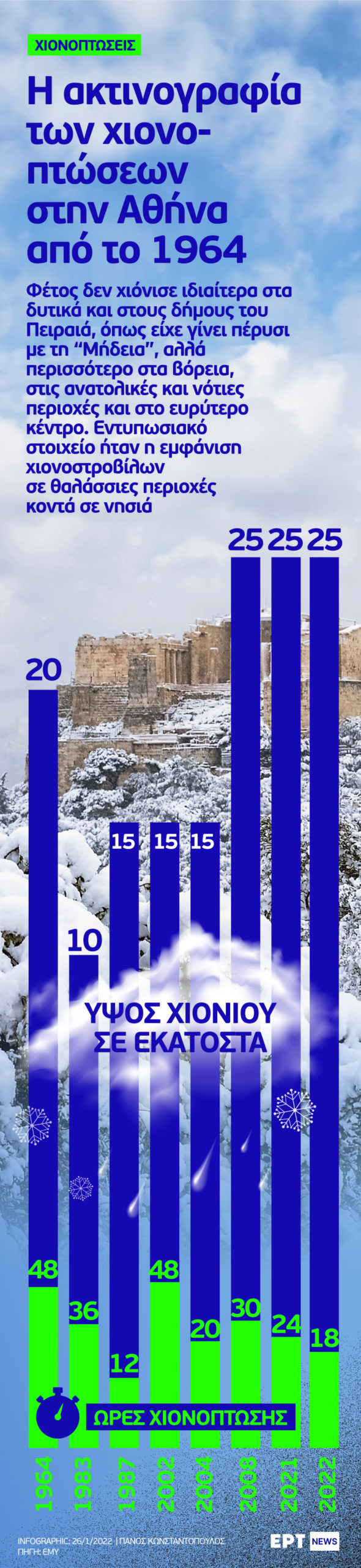 Infographic: Οι χιονοπτώσεις στην Αθήνα από το 1964