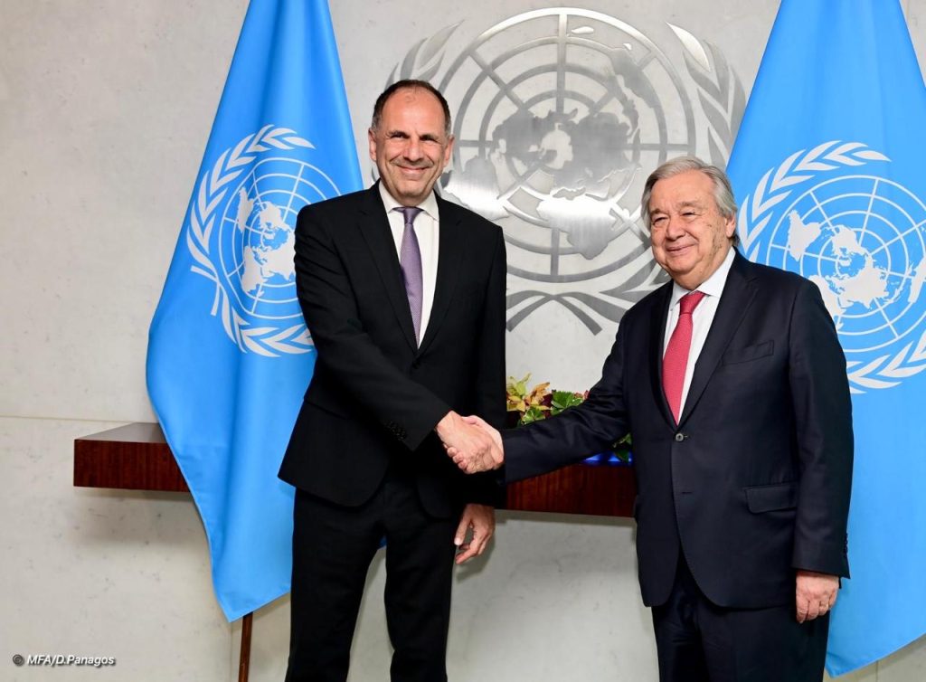 Περίπου μία ώρα διήρκεσε η συνάντηση του Υπουργού Εξωτερικών Γιώργου Γεραπετρίτη με τον ΓΓ του ΟΗΕ Αντόνιο Γκουτέρες στη Νέα Υόρκη. Στην ατζέντα της συνάντησης κυριάρχησαν το Κυπριακό, οι εξελίξεις στη Συρία, το Παλαιστινιακό και η κατάσταση στη Λιβύη.