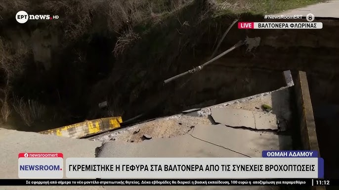 Τα ορμητικά νερά από το ρέμα Σουλού και την υπερχείλιση του Φράγματος Περδίκα παρέσυραν τη γέφυρα στη δημοτική οδό σύνδεσης Βεγόρας Μανιάκι.