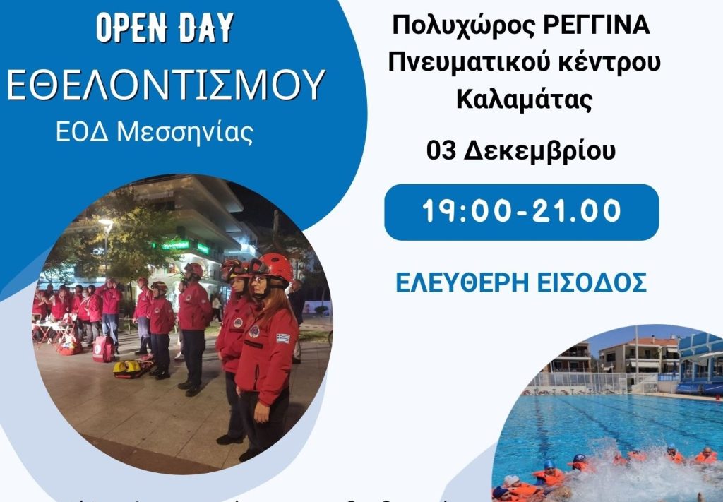 Ανοιχτή εκδήλωση γνωριμίας και ενημέρωσης διοργανώνει την Τετάρτη (3 Δεκεμβρίου 2025) η Ελληνική Ομάδα Διάσωσης Μεσσηνίας, από τις 19:00–21:00 στον Πολυχώρο «Ρεγγίνα» του Πνευματικού Κέντρου Καλαμάτας.