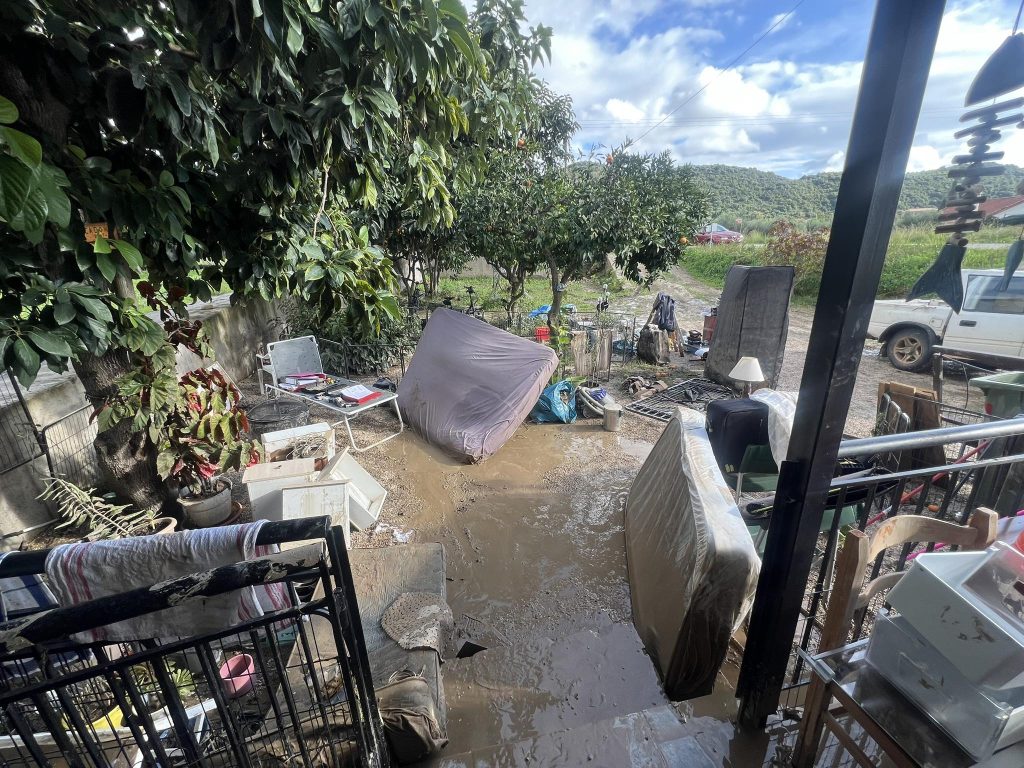 Οι οικογένειες που επλήγησαν έχουν ήδη βγάλει έξω τα αντικείμενα από τα πλημμυρισμένα τους σπίτια, στην προσπάθεια να περισώσουν ό,τι μπορεί να σωθεί.