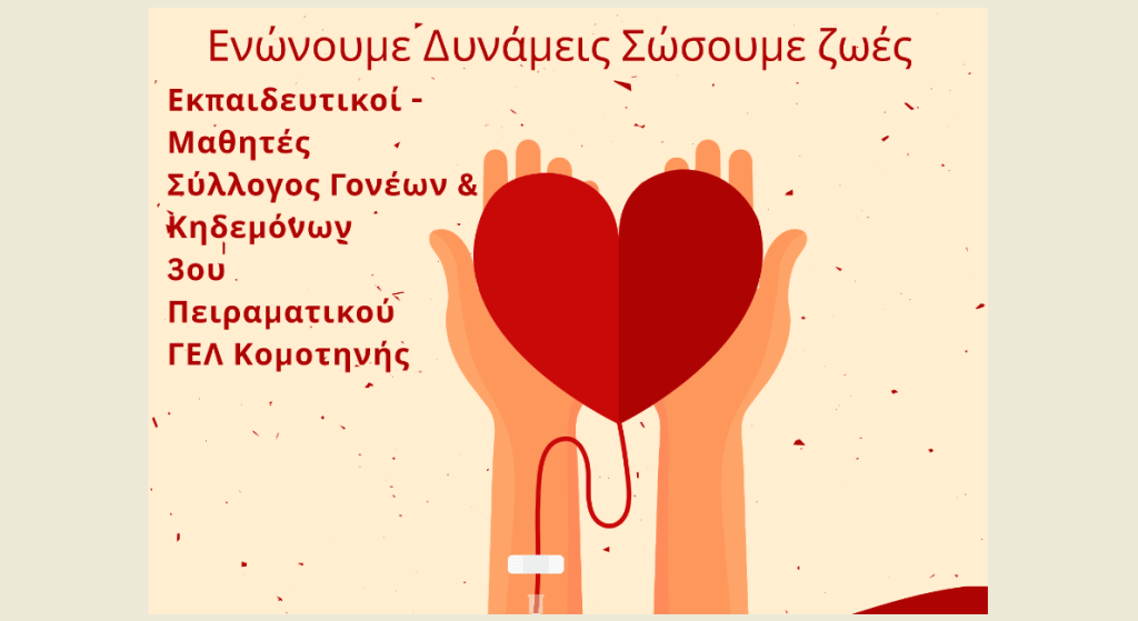 Για δεύτερη συνεχόμενη χρονιά το 3ο Πειραματικό Γενικό Λύκειο Κομοτηνής διοργανώνει εθελοντική αιμοδοσία, στέλνοντας ισχυρό μήνυμα προσφοράς και αλληλεγγύης προς την τοπική κοινωνία.
