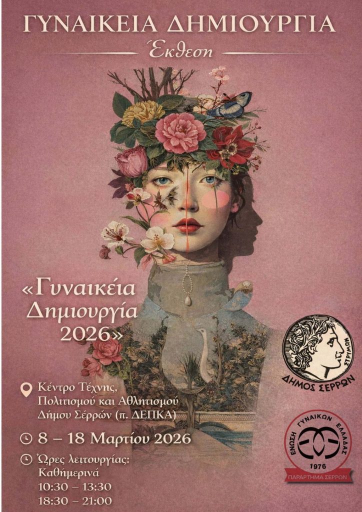 Από τις 8 έως τις 18 Μαρτίου 2026, στο Κέντρο Τέχνης, Πολιτισμού και Αθλητισμού του Δήμου Σερρών, οι δημιουργοί καταθέτουν το έργο και τον