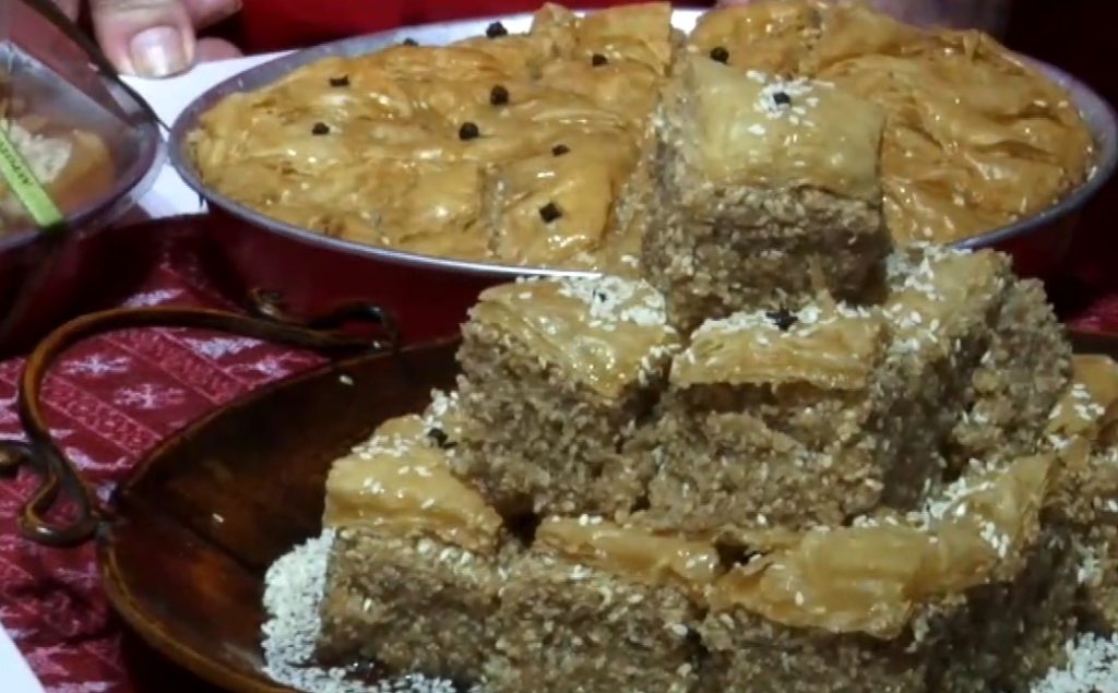 Τα γλυκά έχουν την τιμητική τους αυτή την εορταστική περίοδο και δη τα σιροπιαστά. Ο μπακλαβάς με σουσάμι είναι από τα κατεξοχήν χριστουγεννιάτικα γλυκά στον Μεσότοπο Λέσβου και το χαρακτηριστικό του είναι το σουσάμι και το χειροποίητο φύλλο.
