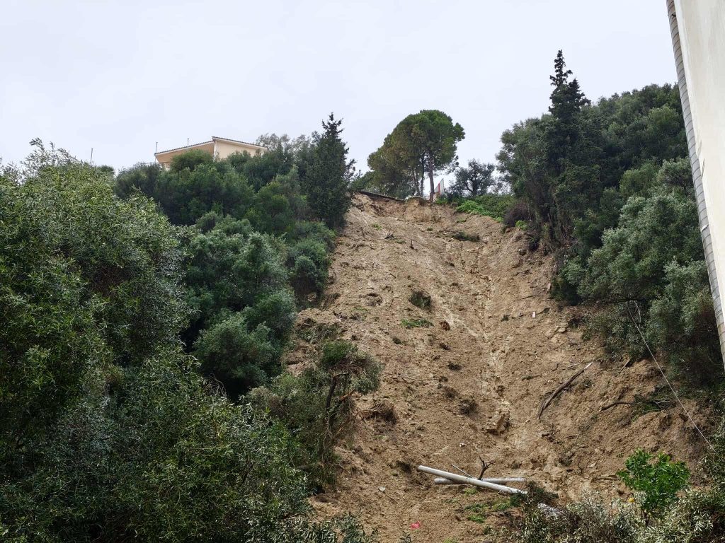 Η κατολίσθηση σημειώθηκε σε ιδιωτική έκταση, σε μια απότομη πλαγιά, στις παρυφές της πόλης του νησιού, όπου μεγάλη ποσότητα
