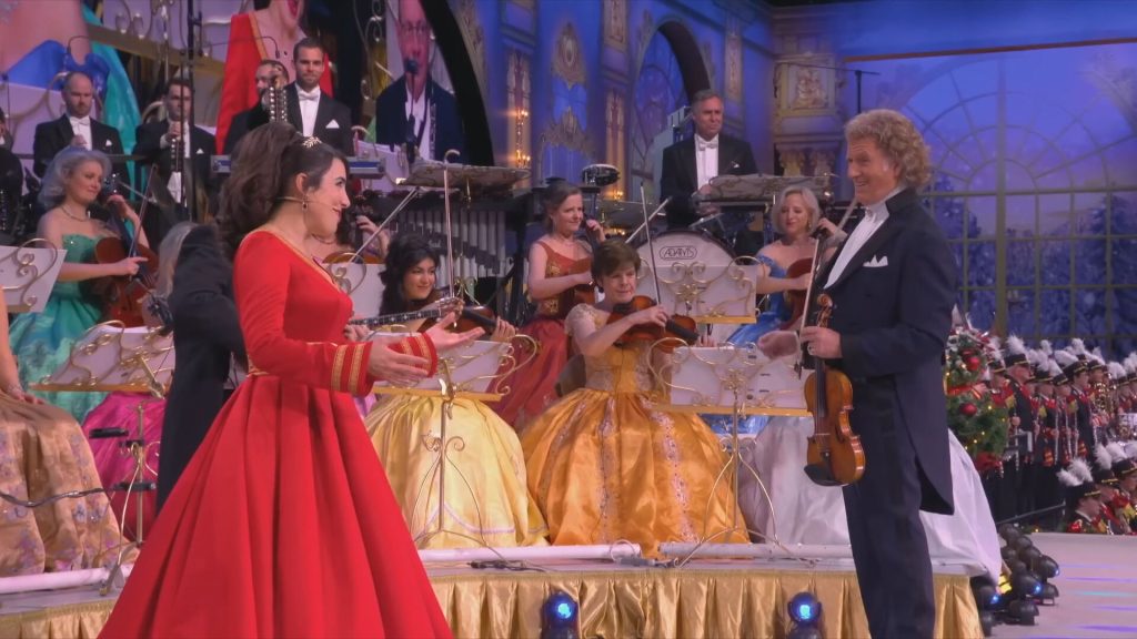 Ο Αντρέ Ριέ επέλεξε να εντάξει στο πρόγραμμα της συναυλίας του τα ελληνικά κάλαντα, μπροστά σε κατάμεστο κοινό που στη μεγάλη του πλειοψηφία