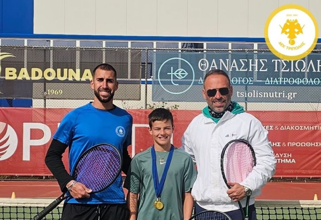 Σημαντική αγωνιστική επιτυχία σημείωσε ο αθλητής του Ομίλου Τένις της ΑΕΚ Τρίπολης Αθανάσιος (Θάνος) Τριανταφύλλου, ο οποίος κατέκτησε την 3η θέση τόσο στα Μονά όσο και στα Διπλά στο 1ο Ε2 Πανελλαδικό Πρωτάθλημα του 2026 στην κατηγορία Αγοριών 12 ετών, που φιλοξενήθηκε στις εγκαταστάσεις του ΟΑ Αριστοτέλης.
