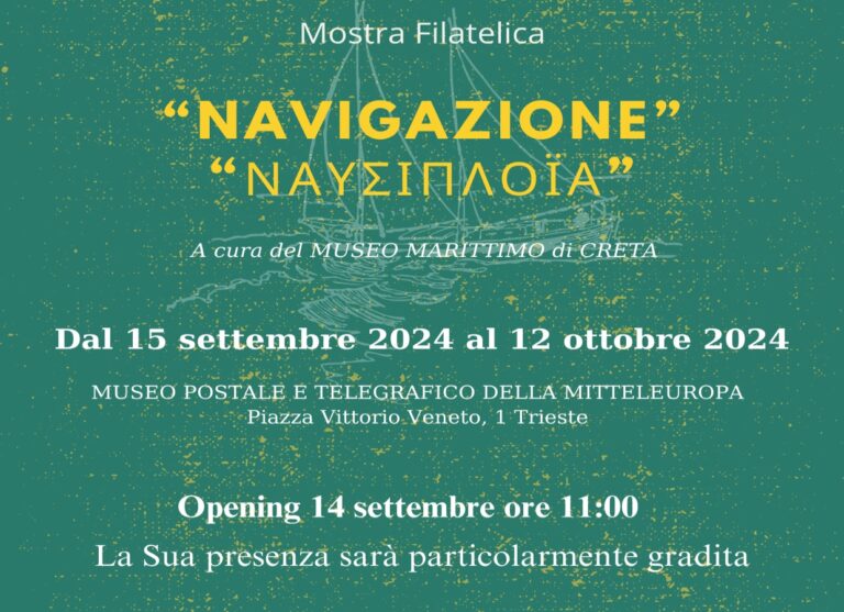 Μια φιλοτελική έκθεση με τίτλο «Ναυσιπλοΐα» εγκαινιάζεται στις 14 Σεπτεμβρίου στις 11 π.μ. στο Ταχυδρομικό και Τηλεγραφικό Μουσείο Mitteleuropa.