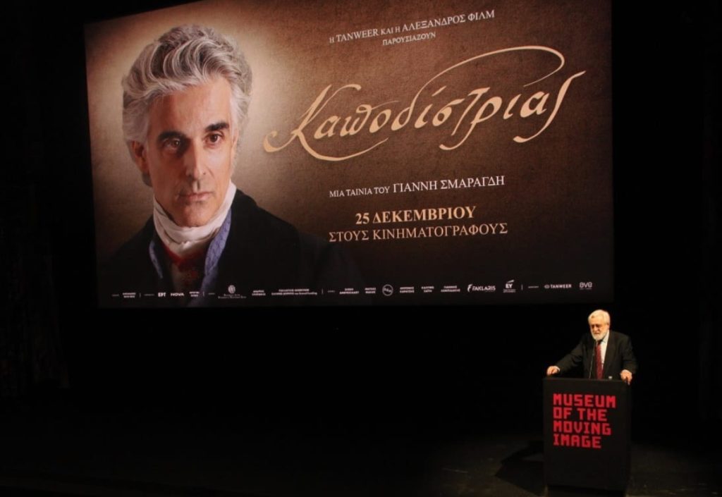 Η Παγκόσμια Πρεμιέρα της ταινίας «Καποδίστριας» του Γιάννη Σμαραγδή πραγματοποιήθηκε το Σάββατο 29 Νοεμβρίου στην αίθουσα προβολών του Museum of the Moving Image στη Νέα Υόρκη, παρουσία του σκηνοθέτη, της κας Ναταλίας Καποδίστρια, απογόνου του Ιωάννη Καποδίστρια, και του κ. Μίνω Μάτσα, που επιμελήθηκε της μουσική της ταινίας.