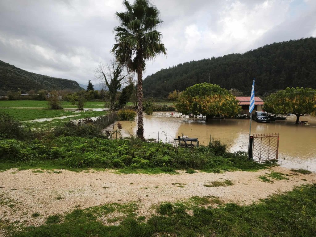Το νερό έχει εισχωρήσει βαθιά στα χωράφια, αφήνοντας πίσω του λασπόνερα και καταστροφή σε αγροτική παραγωγή και δέντρα.