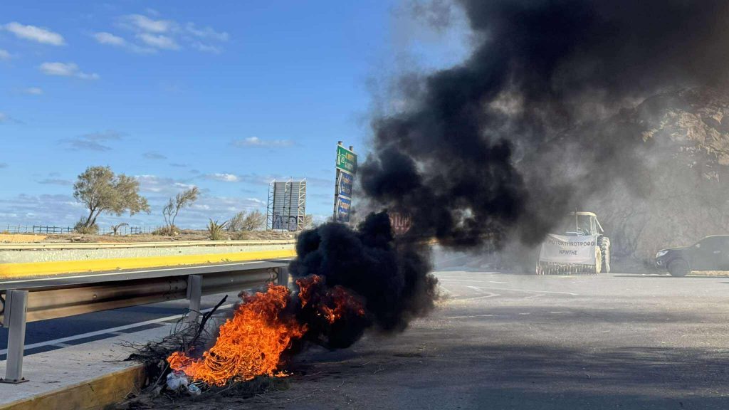 Με νέο κλείσιμο του Βόρειου Οδικού Άξονα Κρήτης στο ύψος του Καρτερού στα ανατολικά της πόλης, οι κτηνοτρόφοι του Ηρακλείου κλιμακώνουν τις κινητοποιήσεις τους, ανάβοντας φωτιές σε λάστιχα από νωρίς το πρωί σε δύο σημεία του οδικού άξονα.