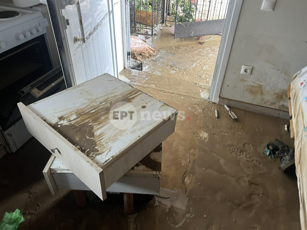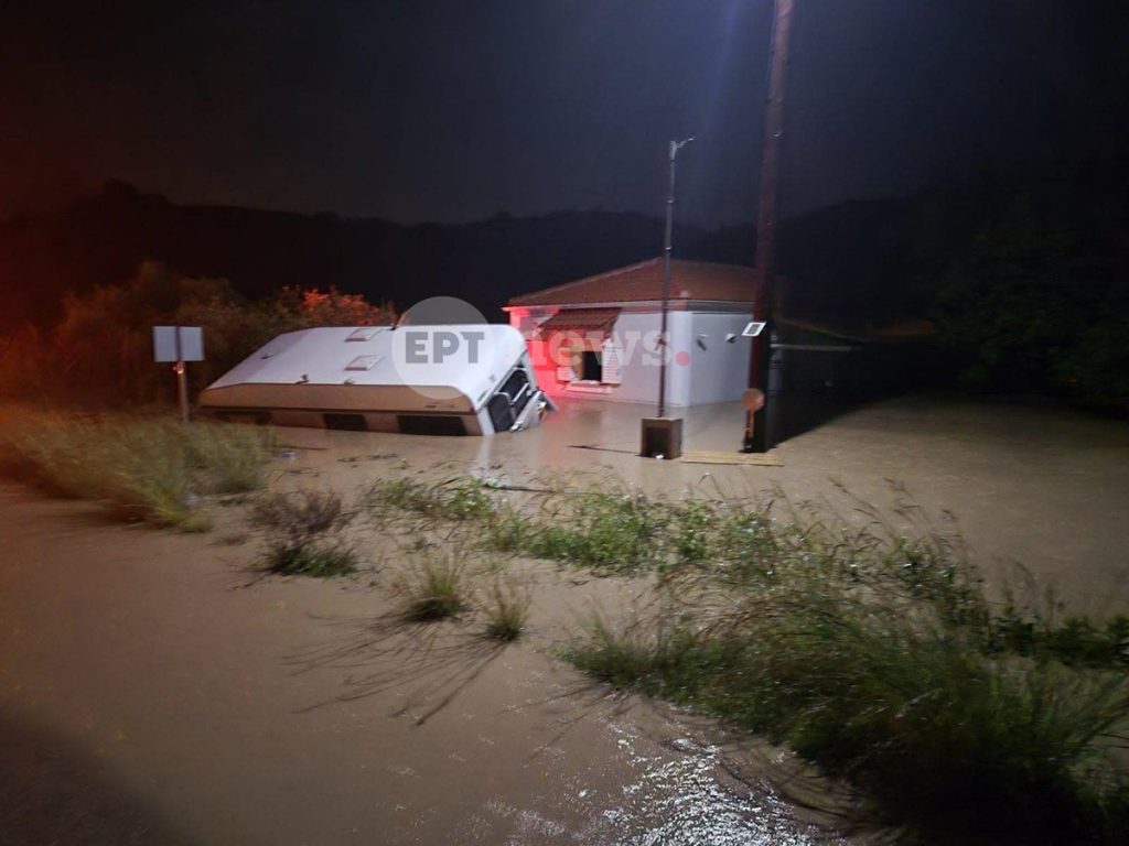 Αποκαλυπτικές είναι οι εικόνες που κατέγραψε το EΡΤnews από το τροχόσπιτο που «ταξίδεψε» από την ορμή του ποταμού και καταπλάκωσε αυτοκίνητό τους.