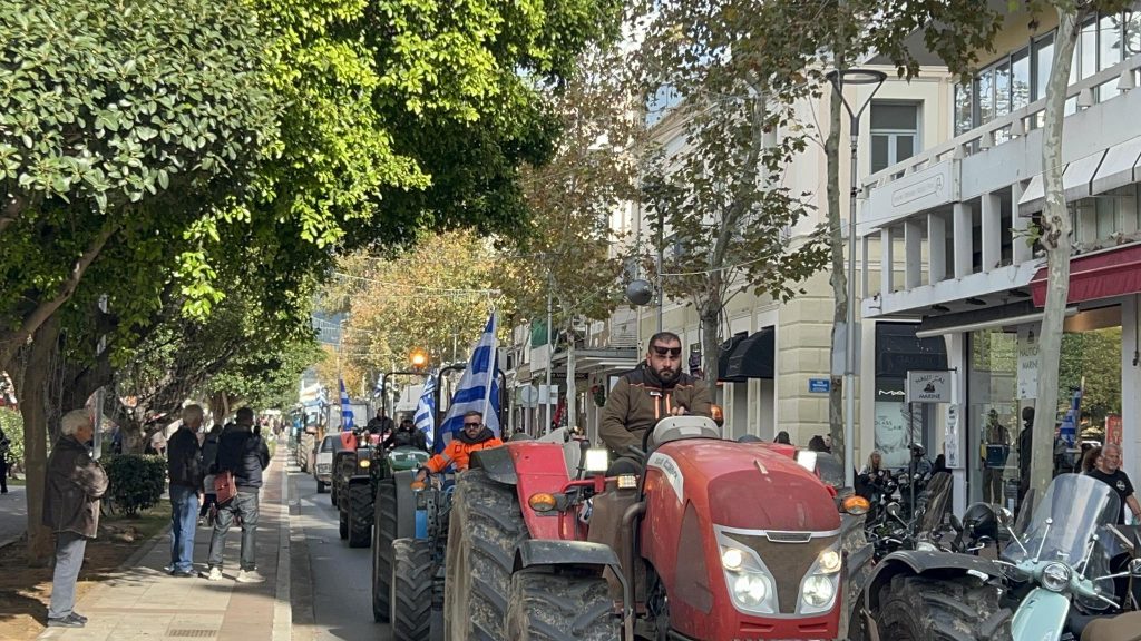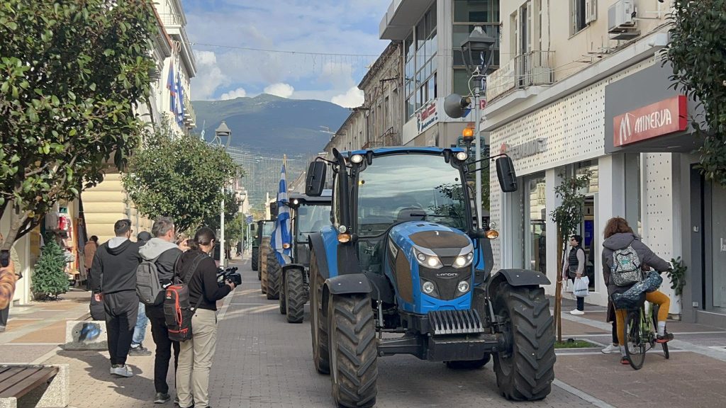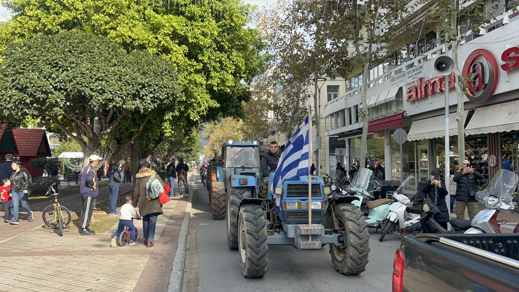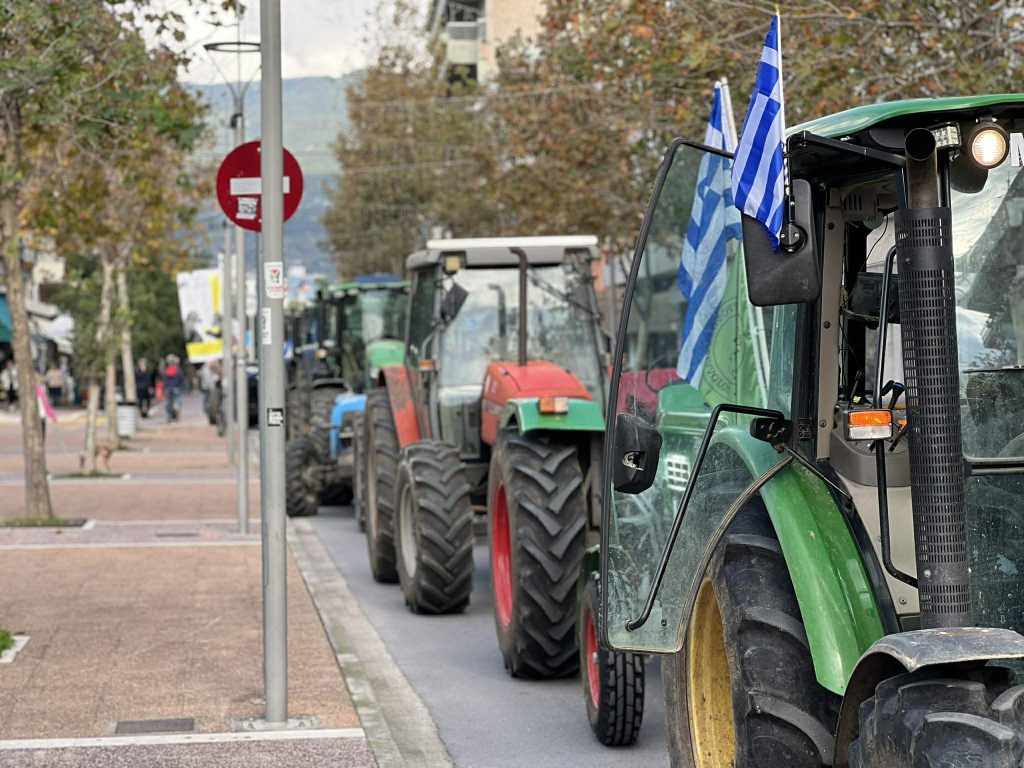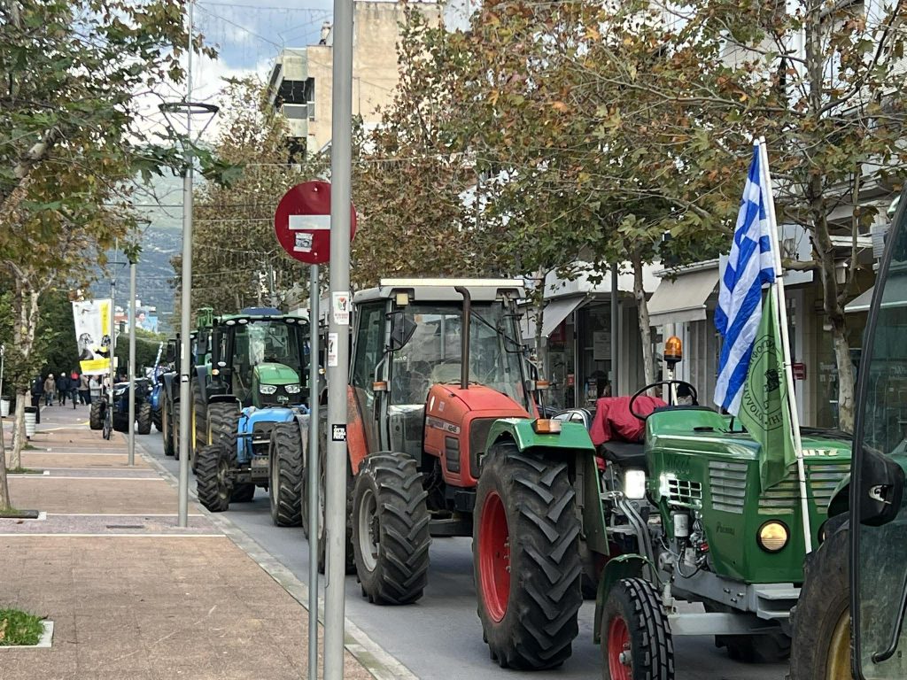 Με αφετηρία τον κόμβο της Μεσσήνης 100 τρακτέρ έφτασαν στο κέντρο της Καλαμάτας πραγματοποιώντας πορεία στους κεντρικούς δρόμους της πόλης.