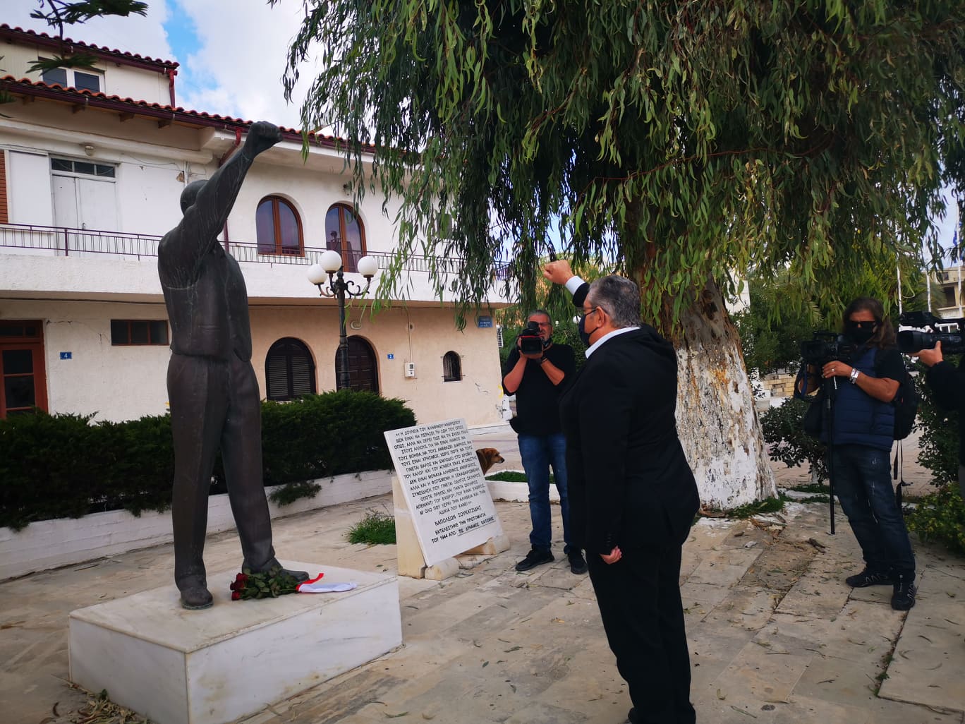 Στο σεισμόπληκτο Αρκαλοχώρι ο Δημήτρης ΚουτσούμπαςΚατέθεσε λουλούδια στο μνημείο του Ναπολέοντα Λουκατζίδη και ακολούθως θα παραβρεθεί και θα μιλήσει σε σύσκεψη με τους τοπικούς φορείς.