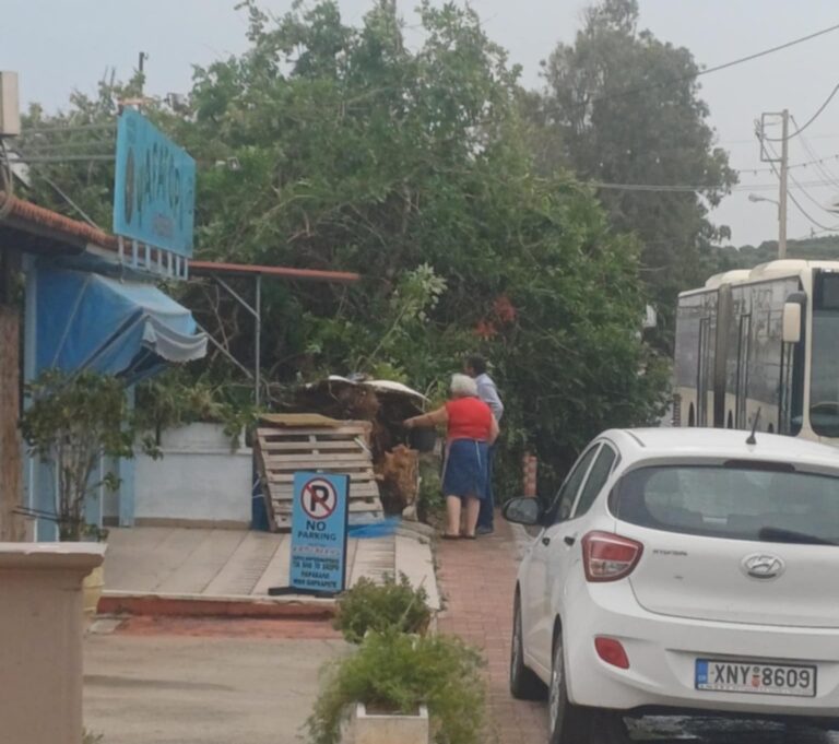 Στη Σκουροχλάδα Κεραμιών πλάτανος έκοψε από τον αέρα και κατέληξε στον δρόμο αποκλείοντας την πρόσβαση προς το χωριό.