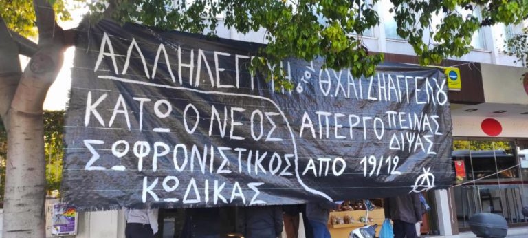 Σάρκα από την σάρκα των κινημάτων, συνεχίζουν τον αγώνα σε έναν χώρο απονεκρωμένο για το σύστημα, στις φυλακές ανθρώπινων ψυχών. Οι αγώνες τους είναι και δικοί μας αγώνες οφείλουμε να τους προασπίσουμε και να γίνουμε η φωνή τους. Κανένας απεργός πείνας ιστορικά δεν επέλεξε τον θάνατο από τη ζωή. Το να βάλεις το σώμα σου ως ανάχωμα όμως, αποτελεί το τελευταίο μέσο αντίστασης και συνοδεύει στον πυρήνα του, τους ευρύτερους αγώνες για ελευθερία και αξιοπρέπεια. Όπλο μας η αλληλεγγύη!