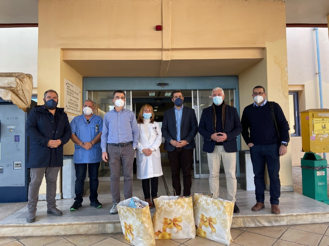Τον Δήμαρχο συνόδευσαν ο Γενικός Γραμματέας, Γιώργος Φραγκιαδάκης και ο Αντιδήμαρχος Οικονομικών, Τάσος Αλόγλου, τους οποίος υποδέχτηκαν ο Διοικητής του Γ.Ν. Νοσοκομείου Χανίων, Γιώργος Μπέας και ο Αναπληρωτής Διοικητής, Μανώλης Μπολώτης, ο Πρόεδρος του Συλλόγου Εργαζομένων του ΓΝΧ, Βαρδής Γεωργακάκης, καθώς και εργαζόμενοι από το ιατρικό, νοσηλευτικό και λοιπό προσωπικό του Νοσοκομείου.