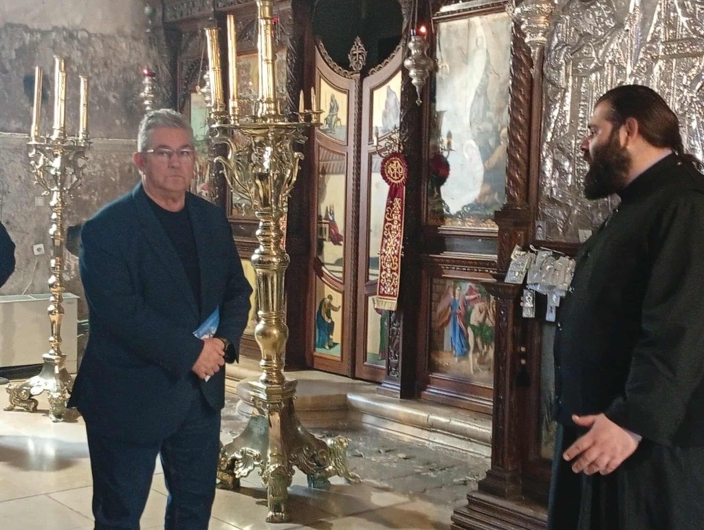 Στη συνέχεια ο κ. Κουτσούμπας και η συνοδεία του επισκέφθηκαν την Ιερά Μονή Αρκαδίου όπου συναντήθηκαν με τον ηγούμενο και μοναχούς, ενώ ενημερώθηκε για την ιστορία αλλά και τα προβλήματα του ιστορικού Μοναστηριού.
