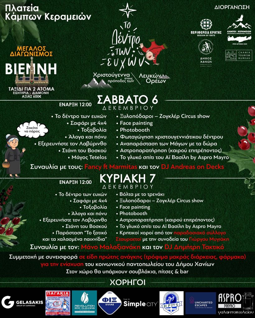 Ο Δήμος Χανίων και ο Πολιτιστικός Σύλλογος Κάμπων διοργανώνουν “Το Δέντρο των Ευχών”, τη μεγάλη Χριστουγεννιάτικη Γιορτή της χανιώτικης ενδοχώρας.