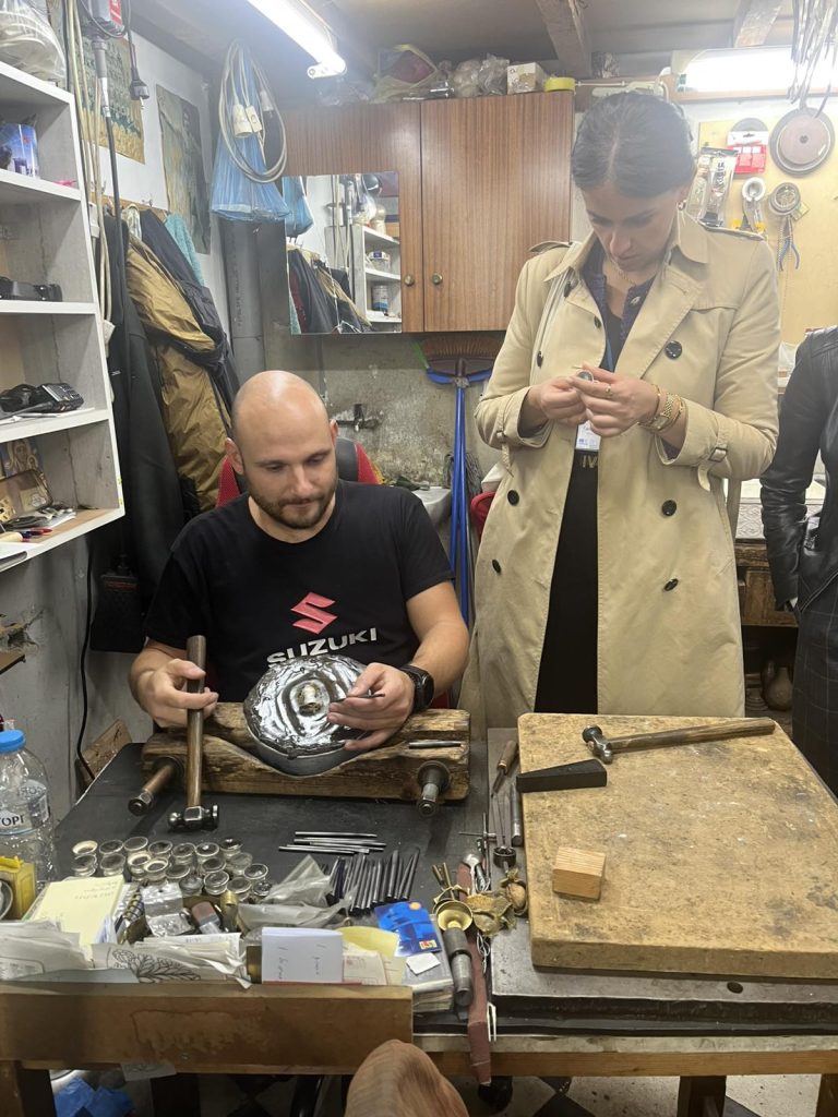 Το Σωματείο Ασημουργών και Μεταλλοτεχνιτών Ιωαννίνων «Η Γιαννιώτικη Τέχνη» υποδέχθηκε τους εμπειρογνώμονες του Δικτύου Άυλης Πολιτιστικής Κληρονομιάς στο παραδοσιακό εργαστήριο της οικογένειας Βαρζώκα, στο πλαίσιο της 19ης ετήσιας συνάντησης του Ευρωπαϊκού Δικτύου Εμπειρογνωμόνων Χωρών της Νοτιοανατολικής Ευρώπης.