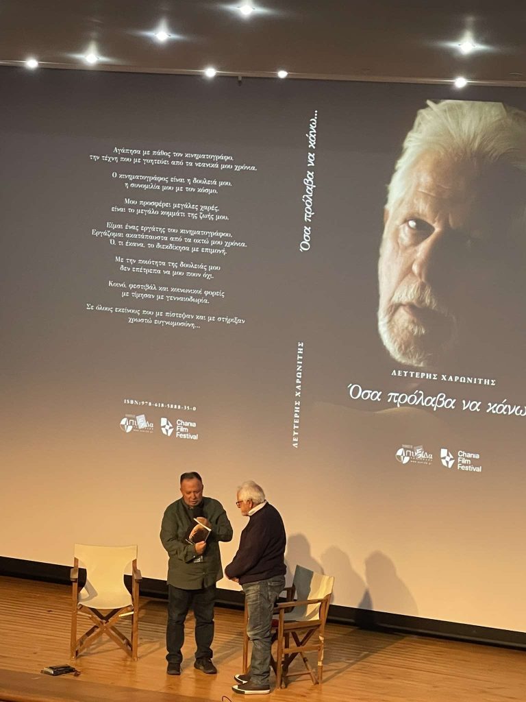 Το Φεστιβάλ Χανίων προχώρησε στην έκδοση αφιερωμάτων σε δημιουργούς του Ελληνικού σινεμά. Το Σάββατο 25/10 Το Φεστιβάλ Χανίων σε ειδική εκδήλωση θα τιμήσει τον Έλληνα Σκηνοθέτη Παντελή Βούλγαρη. Χθες το βράδυ μέσα σε μια κατάμεστη αίθουσα τιμήθηκε ο Σκηνοθέτης Λευτέρης Χαρωνίτης, ενώ προβλήθηκε η ταινία του «Καζατζάκης-Ακροβάτης πάνω από το χάος». Ιδιαίτερο ενδιαφέρον παρουσιάζουν οι ταινίες των νέων δημιουργών που προβάλλονται στην Β αίθουσα.