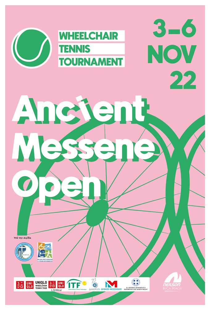 Το 5ο διεθνές τουρνουά τένις με αμαξίδιο «Ancient Messene Open» συνδιοργανώνεται από τον Δήμο Μεσσήνης, την Παγκόσμια Ομοσπονδία τένις ITF, τη Γενική Ελληνική Αθλητική Ομοσπονδία ΑμεΑ, την Ελληνική Φίλαθλη Ομοσπονδία Αντισφαίρισης, τον Αθλητικό Σύλλογο ΑμεΑ Καλαμάτας ΔΙΑΦΟΡΟΖΩ και την Περιφερειακή Ενότητα Μεσσηνίας.
