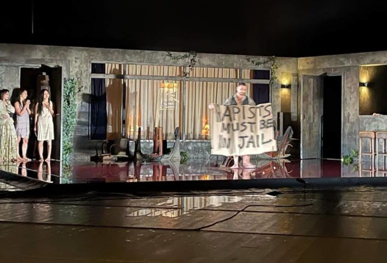 Στο τέλος της παράστασης τους, οι Peeping Tom έβγαλαν πλακάτ στη σκηνή με την φράση “Rapists must be in jail” (οι βιαστές πρέπει να είναι στη φυλακή). Η διαμαρτυρία την καλλιτεχνών χειροκροτηθηκε απ’ το κοινό, που ήταν ενθουσιώδες για το σύνολο της παράστασης.